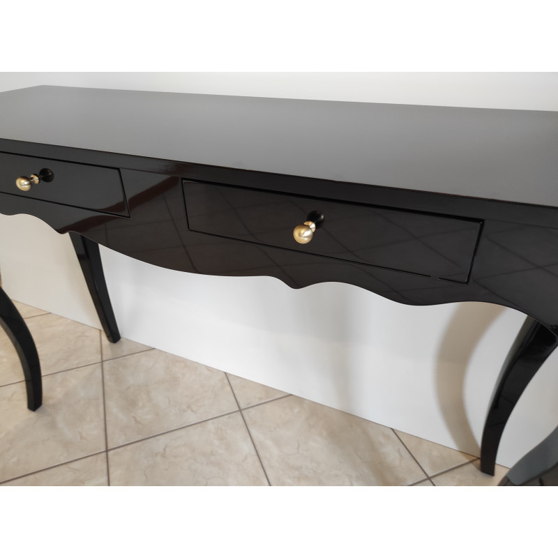 Konsola wykonana jest z drewna brzozowego i z płyty mdf, lakierowana lakierem poliuretanowym.
