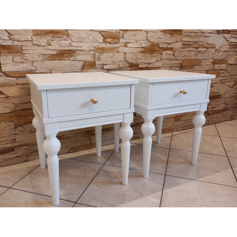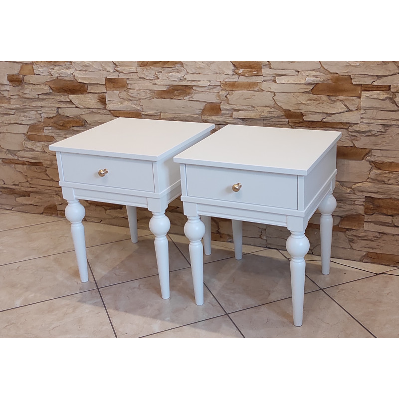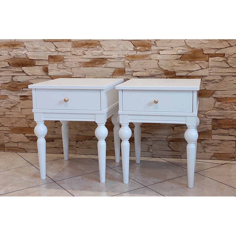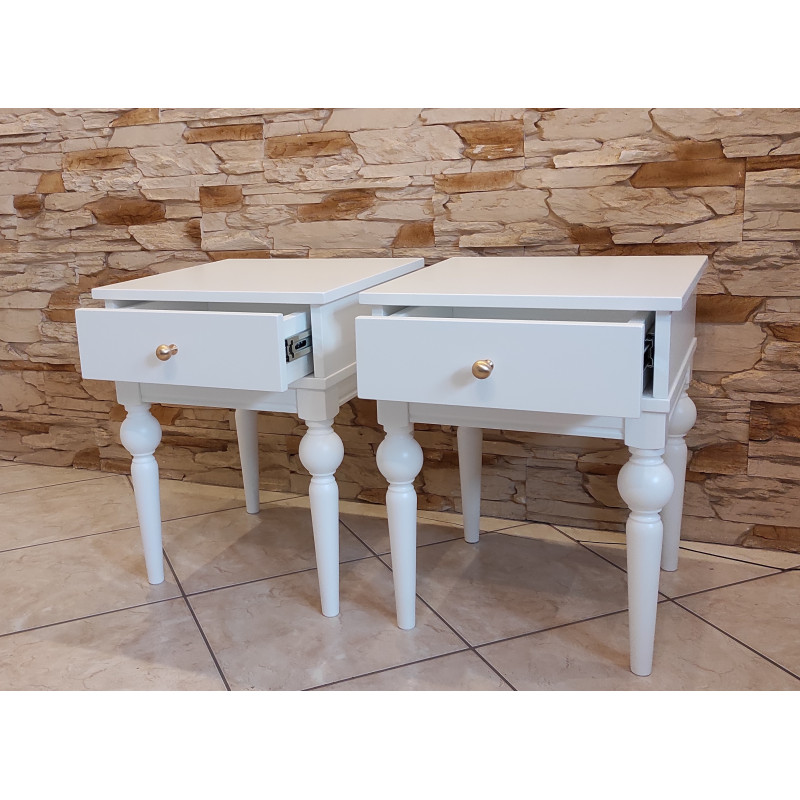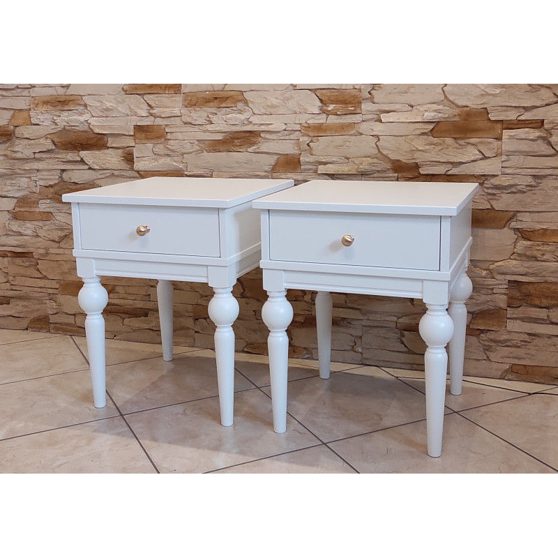 Komplet 2 sztuk stolików nocnych na nogach toczonych.