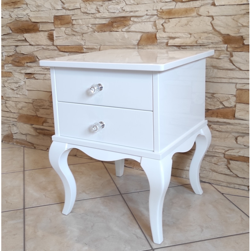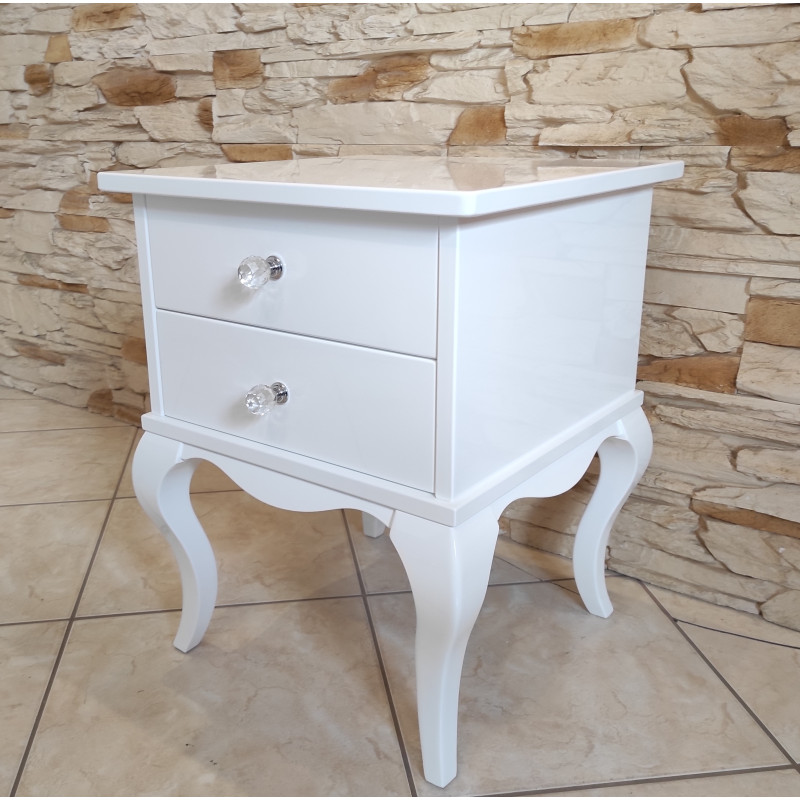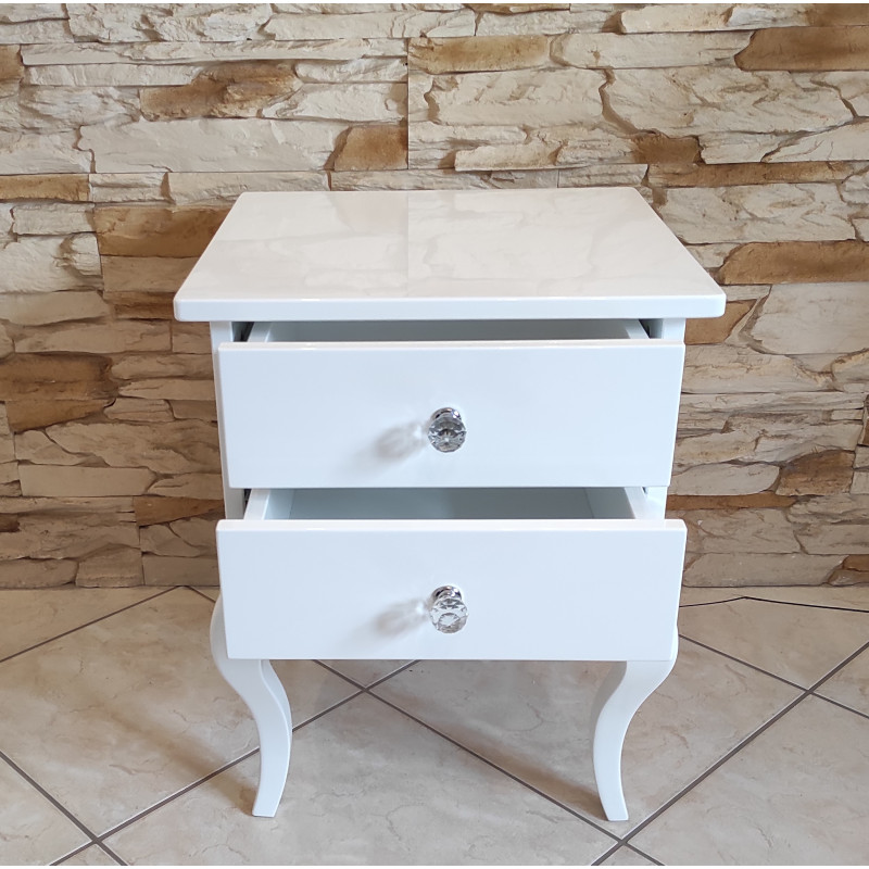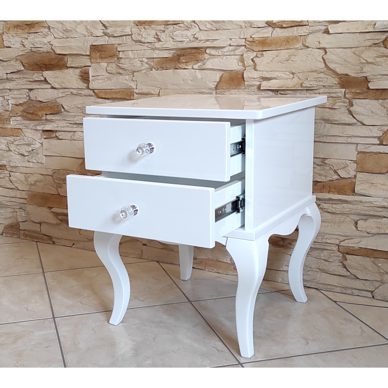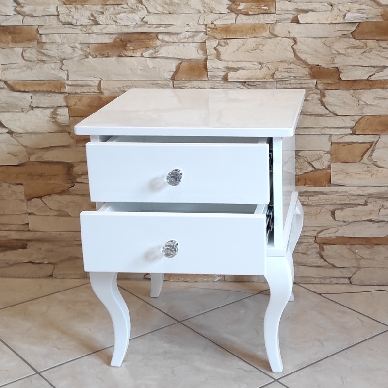 Stolik posiada 2 szufladki z kryształowymi gałkami.