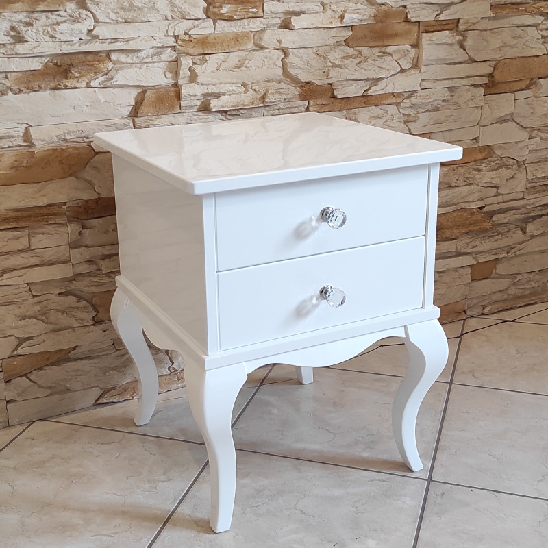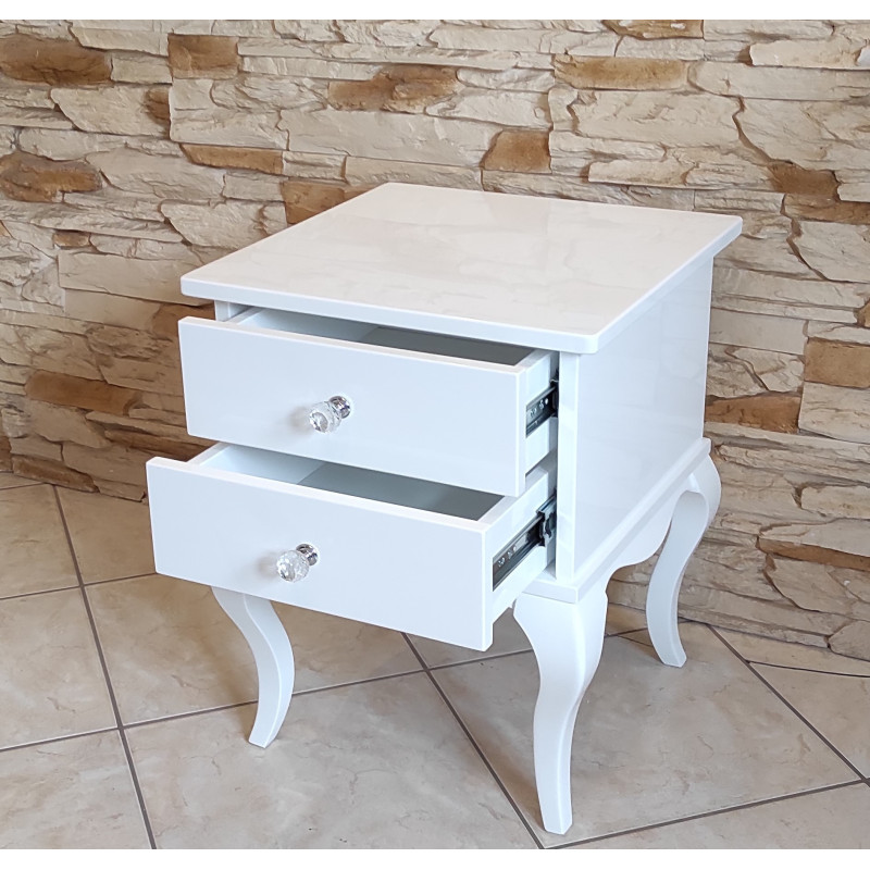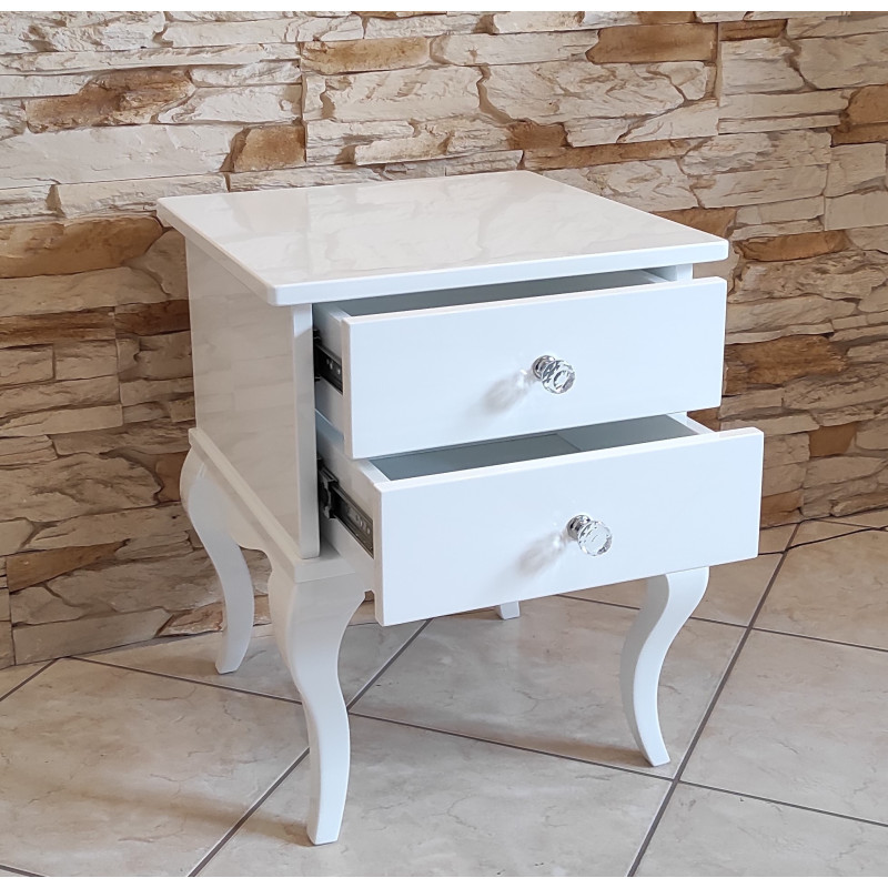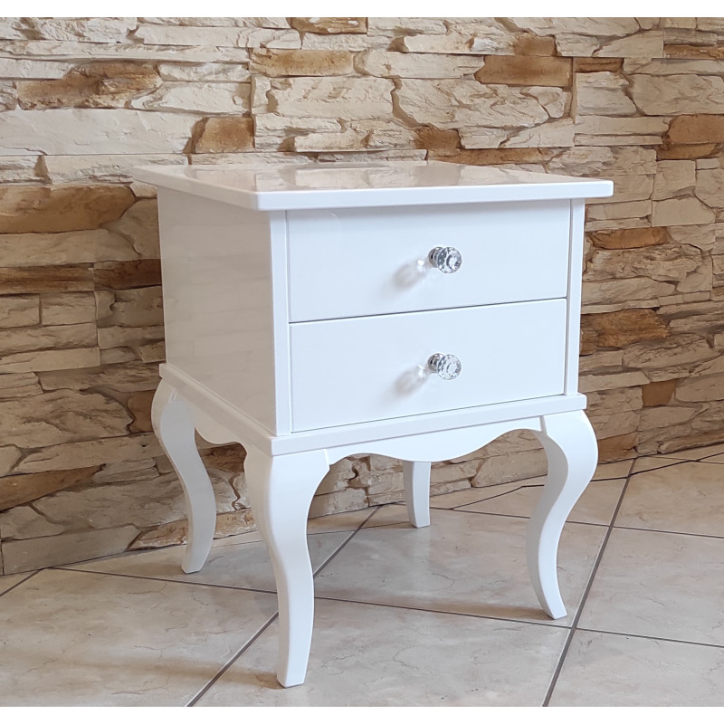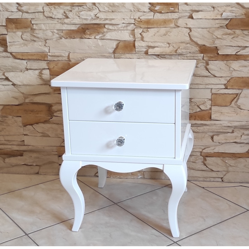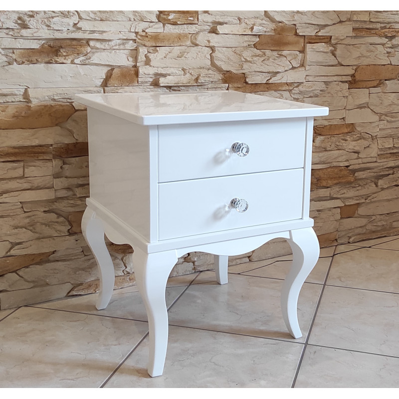 Stolik posiada 2 szufladki z kryształowymi gałkami.